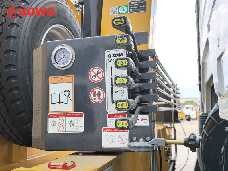 O chassi do veículo é robusto e durável, e o guindaste utiliza o material XCMG SQ4SK2Q, que oferece excelente resistência à flexão e estabilidade. Tanto o sistema de basculamento quanto o sistema de içamento são equipados com proteção contra sobrecarga e limitadores para garantir uma operação segura e confiável. A estrutura estável dos estabilizadores melhora o equilíbrio durante a operação, garantindo um carregamento e descarregamento suaves.