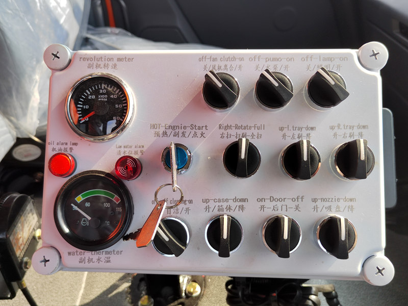 O mecanismo de varrição do caminhão varredor de ruas Sinotruk utiliza cerdas de nylon de alta resistência. As escovas de varrição principais e auxiliares funcionam em conjunto, com velocidade e pressão no solo ajustáveis ​​para se adaptarem às diferentes condições da via. A escova de varrição ajusta automaticamente seu ângulo para garantir uma limpeza completa e também possui uma função automática de desvio de obstáculos, elevando-se rapidamente para evitar obstáculos.