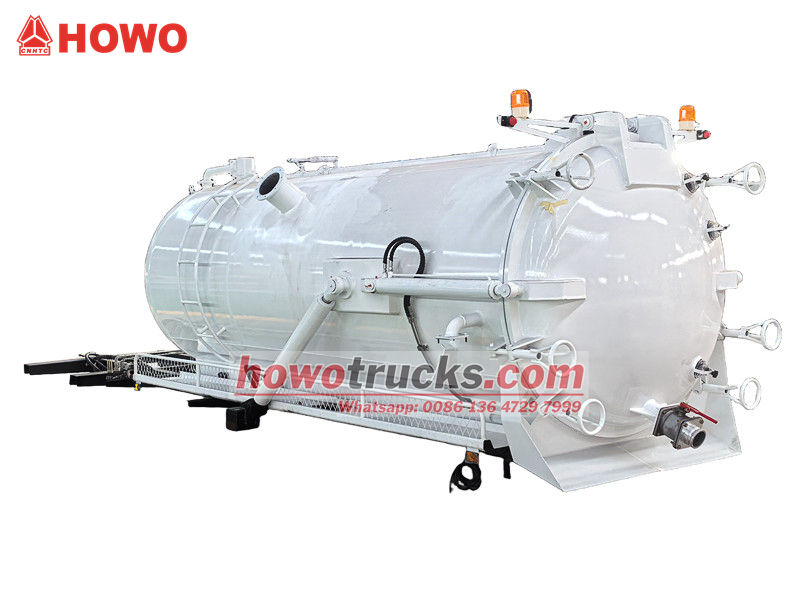 Kits de carroceria para caminhão-tanque de limpeza de drenagem de 10 m³ (também chamados de superestrutura para caminhão-tanque a vácuo de 10.000 litros, carroceria superior para caminhão-bomba de fossa séptica de 10 m³, kit de carroceria superior para caminhão-tanque de bomba de fossa séptica de 10 m³, superestrutura para caminhão de sucção a vácuo, carroceria superior para caminhão-tanque a vácuo, kits de carroceria superior para caminhão-tanque de descarte de esgoto) Será instalado no chassi e utilizado para limpar e coletar líquidos como água suja, lodo, fossas sépticas, petróleo bruto, etc. É adequado para limpeza de esgoto, fossas sépticas, sumidouros, sarjetas, etc.