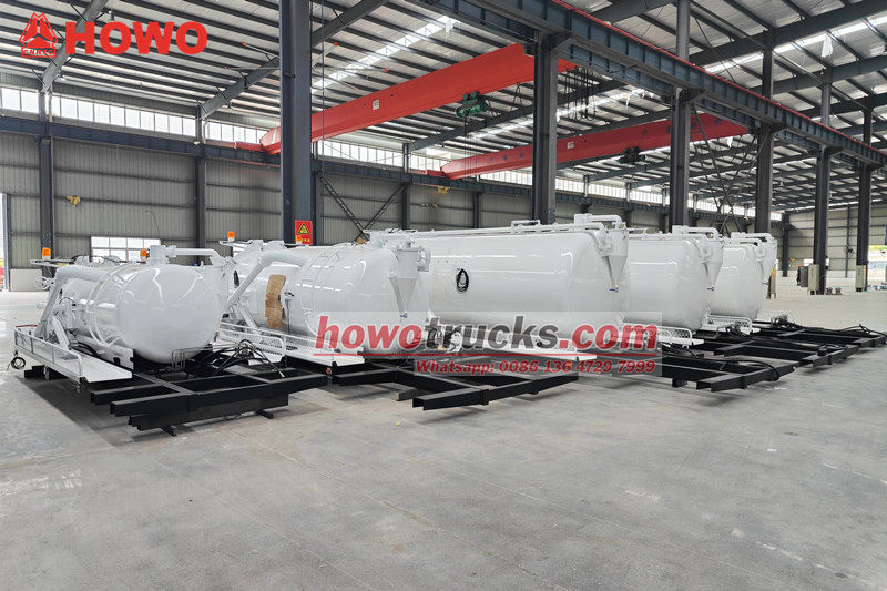 Os kits de carroceria para caminhão-tanque de limpeza de drenagem de 10 m³ consistem em um sistema de sucção a vácuo, um tanque de esgoto, um sistema hidráulico e um dispositivo de controle. São utilizados principalmente para sucção e transporte de esgoto, lodo, fossas sépticas e resíduos industriais. A parte superior da carroceria utiliza uma bomba de vácuo para gerar uma forte pressão negativa, aspirando rapidamente os resíduos para dentro do tanque selado. Os kits oferecem operação fácil, forte sucção e excelente vedação, o que os torna amplamente utilizados em saneamento municipal e limpeza industrial.