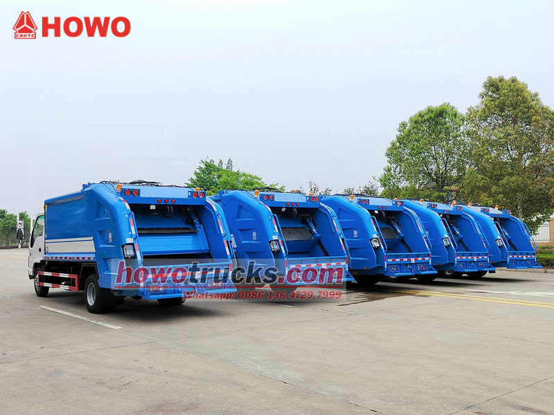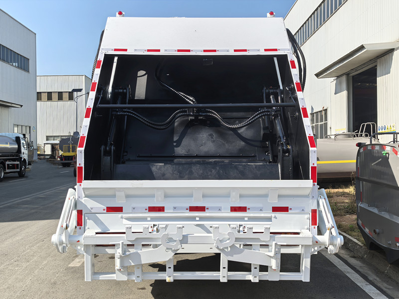 ► Princípio de descarga: Ao chegar à central de tratamento de resíduos ou ao aterro sanitário, o caminhão compactador de lixo da HOWO utiliza um mecanismo de descarga para despejar os resíduos da área de armazenamento. Esse processo é realizado por meio de um dispositivo de despejo automático. Após a descarga, o caminhão pode retomar sua operação de coleta de resíduos.