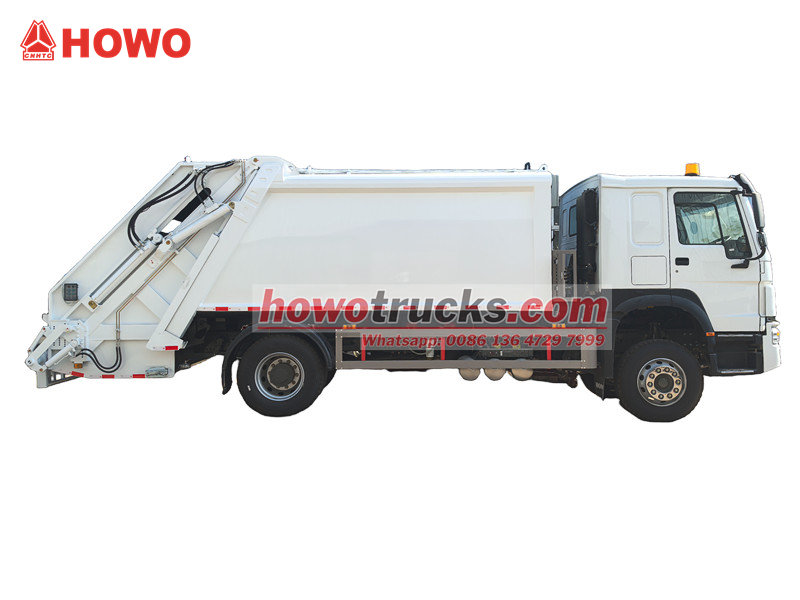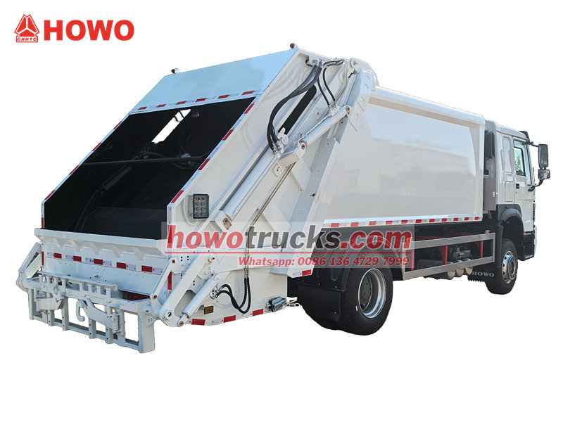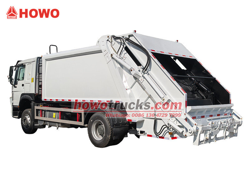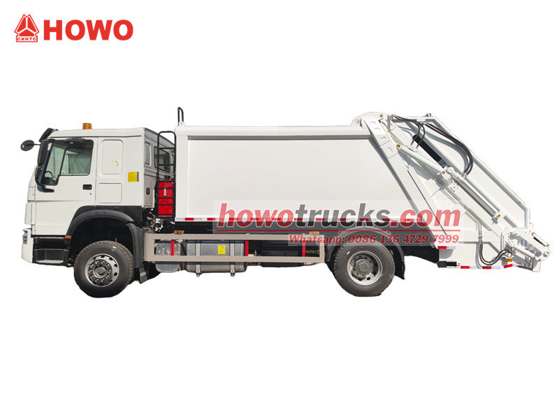 ●O caminhão compactador de lixo Howo está equipado com uma potente unidade de compressão hidráulica, que permite alcançar uma alta taxa de compactação do lixo e, consequentemente, multiplicar a capacidade de carga, melhorando assim a eficiência do transporte.