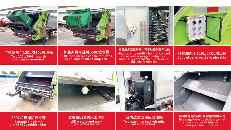 ➤Os processos de carga, compressão e descarga do veículo são todos controlados por uma combinação de mecanismos eletro-hidráulicos, tornando a operação simples e altamente automatizada.