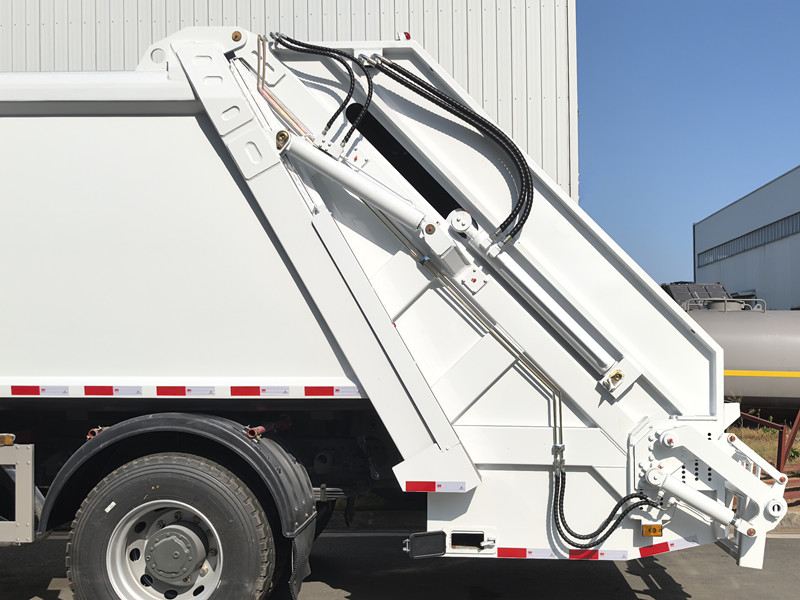 ► Princípio da compactação: Para melhorar a eficiência do transporte de lixo, os caminhões de coleta da HOWO utilizam um dispositivo de compactação. Esse dispositivo usa um sistema hidráulico ou outro mecanismo de pressão para comprimir o lixo amontoado em um volume menor, permitindo que mais lixo seja armazenado durante o transporte.
