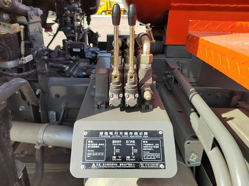 ♦O veículo está equipado com um visor de nível, um manômetro de vácuo e uma válvula de segurança contra transbordamento, permitindo que os operadores monitorem o status do tanque em tempo real e garantindo uma operação segura.
