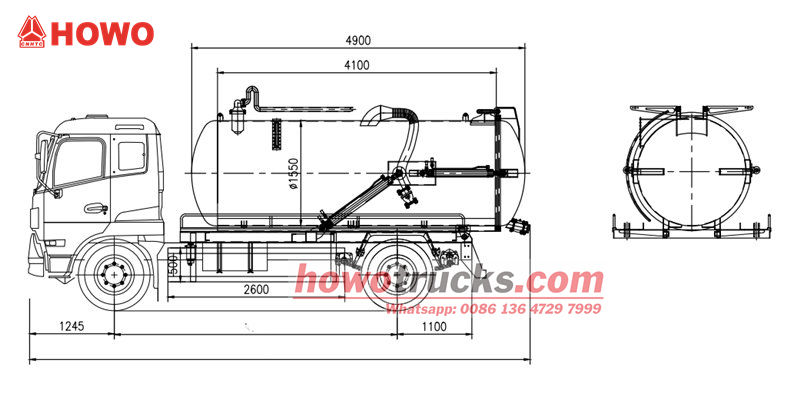 O caminhão de sucção de águas residuais Howo de 300 HP utiliza um chassi Howo 4×2 com distância entre eixos de 4600 mm. É equipado com um motor diesel WP10.300E22 de 300 hp com cilindrada de 9,726 L, acoplado a uma caixa de câmbio HW13710 e sistema de direção ZF8198, além de 7 pneus 295/80R22.5, proporcionando potência e estabilidade robustas. O tanque é fabricado em aço carbono de alta qualidade, o que o torna resistente e durável, e está equipado com um sistema de bomba de vácuo de alta eficiência, com funções de autoescorvamento, autolimpeza e autodescarga.