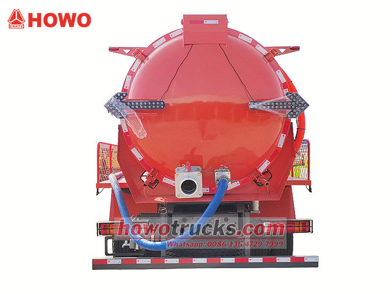 ●O caminhão de sucção de águas residuais Howo utiliza uma bomba de vácuo para gerar alta pressão negativa, criando um vácuo dentro do tanque.