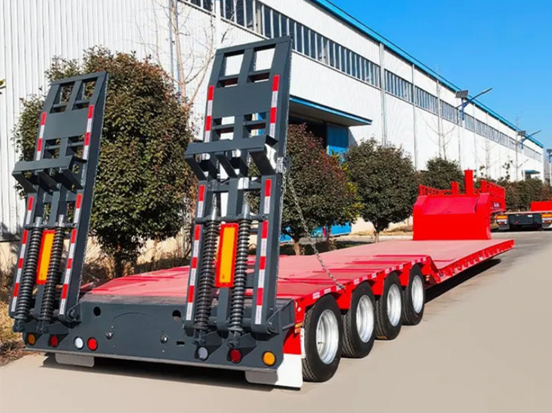 Nosso Reboque plataforma baixa de 4 eixos e 80 toneladas Incorpora um pescoço de ganso destacável e um design de centro rebaixado, equipado com quatro eixos Fuwa de 13 toneladas e um sistema de suspensão com 10 molas de lâmina reforçadas. Essa combinação oferece maior capacidade de carga e um centro de gravidade mais baixo. A suspensão otimizada melhora significativamente a estabilidade de condução, enquanto a estrutura modular permite operações rápidas de carga e descarga. Acomoda diversos tipos de carga, melhorando a eficiência geral do transporte. Componentes padronizados garantem compatibilidade e facilidade de manutenção, e soluções altamente personalizadas estão disponíveis para atender às necessidades específicas do cliente.