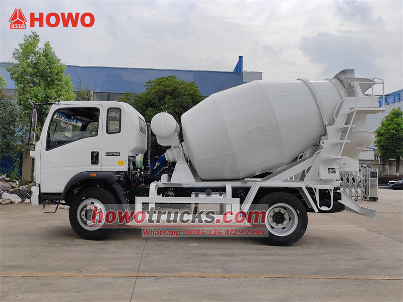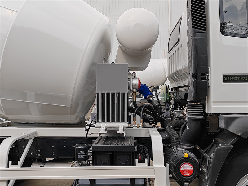 O caminhão betoneira HOWO de 5 metros cúbicos adota a cabine semi-articulada HOWO 2080, com massa total de 16 toneladas e distância entre eixos de 3800 mm. É equipado com um motor Sinotruk MC05.18-40 de 180 cavalos de potência e uma caixa de câmbio HW90510C de 10 velocidades. O tanque de mistura superior tem capacidade para 5 metros cúbicos e é feito de aço manganês Q355. A espessura do corpo do tanque é de 4 mm e a da tampa é de 6 mm. Possui redutor Keyi, bomba e motor hidráulicos Interpap italianos, radiador de fabricação chinesa, conjunto de controle pneumático, tanque de água com capacidade de 400 litros, sistema de alimentação de água pressurizada, alavancas de controle duplas na traseira, operação por engate e baixa taxa de resíduos.