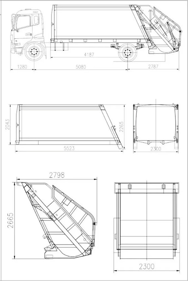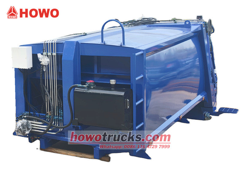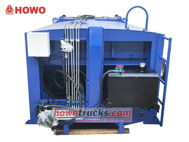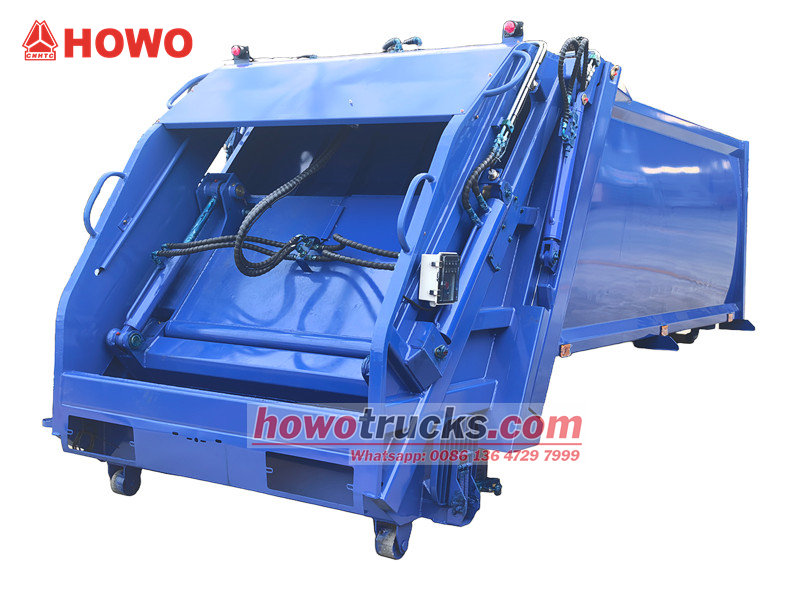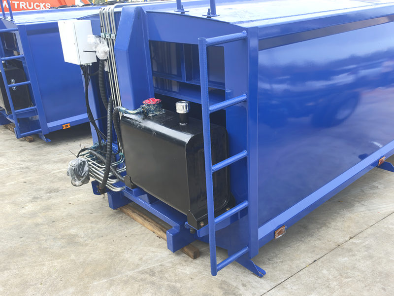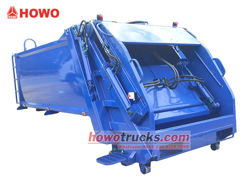 Carrocerias para caminhões de coleta de lixo de 8 m³ (também chamadas de carroceria superior para caminhão de lixo com carregamento traseiro de 8 m³, superestrutura para caminhão compactador de resíduos, kit para caminhão de coleta de lixo com carregamento traseiro, superestrutura para caminhão compactador de lixo, kit de carroceria superior para caminhão compactador de lixo, carroceria superior para caminhão compactador com carregamento traseiro, etc.) É um novo tipo de veículo de saneamento especialmente utilizado para coletar, transportar e remover lixo. A parte superior da carroceria é uma caçamba de lixo de 8 m³, a parte traseira possui um mecanismo basculante e existem 3 métodos para operar o caminhão no carregamento e descarregamento.