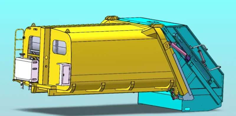 O princípio de funcionamento da carroceria superior de um caminhão de coleta de lixo com carregamento traseiro consiste principalmente em três etapas: carregamento, compressão e descarregamento.