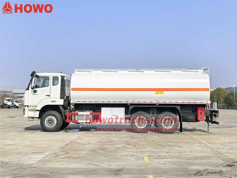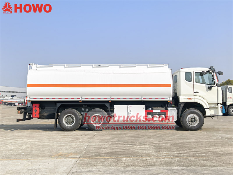 13000*2OCaminhão-tanque de combustível Howoequipado com umWDmodelo6Motor diesel de 12 cilindros em linha, refrigerado a água, turboalimentado e com intercooler, com potência máxima de371 HPA caixa de câmbio é10velocidades dianteiras e2Velocidade traseira, equipada com embreagem de diafragma reforçada.O caminhão-tanque de combustível HowoPossui grande potência e boa controlabilidade, sendo adequado para o transporte de petróleo em diversas condições de estrada.
