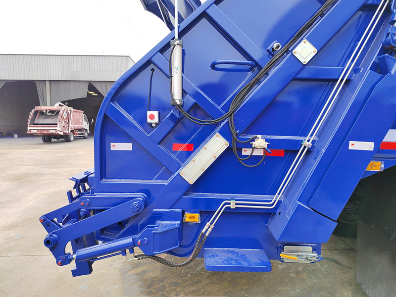 ♦Quando o veículo chega à estação de tratamento de resíduos, o sistema hidráulico inverte seu funcionamento, acionando o empurrador para ejetar os resíduos compactados da carroceria do caminhão.
