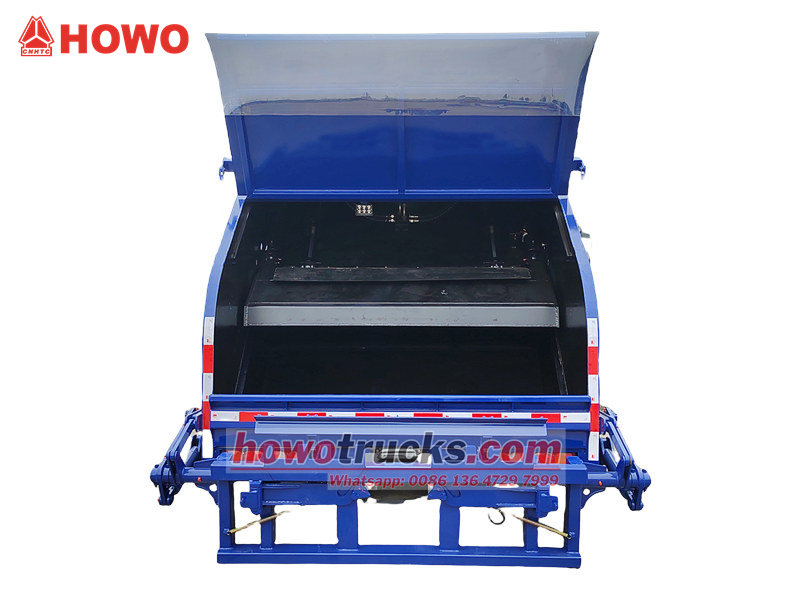 A lixeira é feita de chapa de aço resistente às intempéries de alta resistência, com painéis laterais moldados em peça única. O compartimento possui excelente vedação, impedindo vazamentos de esgoto e a propagação de odores, tornando-a ecológica e eficiente. Caminhão de coleta de lixo com compactação traseira Howo É adequado para coleta e transporte centralizados de resíduos domésticos em cidades, áreas residenciais, fábricas e outros locais. É fácil de operar, seguro e confiável.