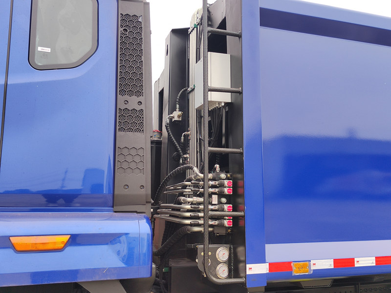 ●O sistema realiza a compactação e o descarregamento automáticos do lixo por meio de transmissão hidráulica, melhorando significativamente a eficiência da coleta e do transporte de resíduos.
