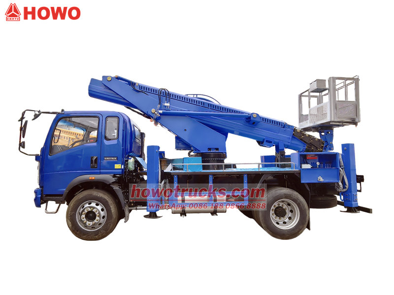 7200As a professional engineering vehicle, the HOWO 18 meter articulated platform aerial truck is designed to combine reliable technical performance with comprehensive safety protection, making it suitable for various high-altitude operation scenarios. In terms of basic chassis and power configuration, the truck adopts the Howo all-wheel drive chassis, which lays a solid foundation for its flexible operation in complex road conditions. Equipped with an ISF3.8S3154 engine, it can output a maximum power of 154 horsepower.