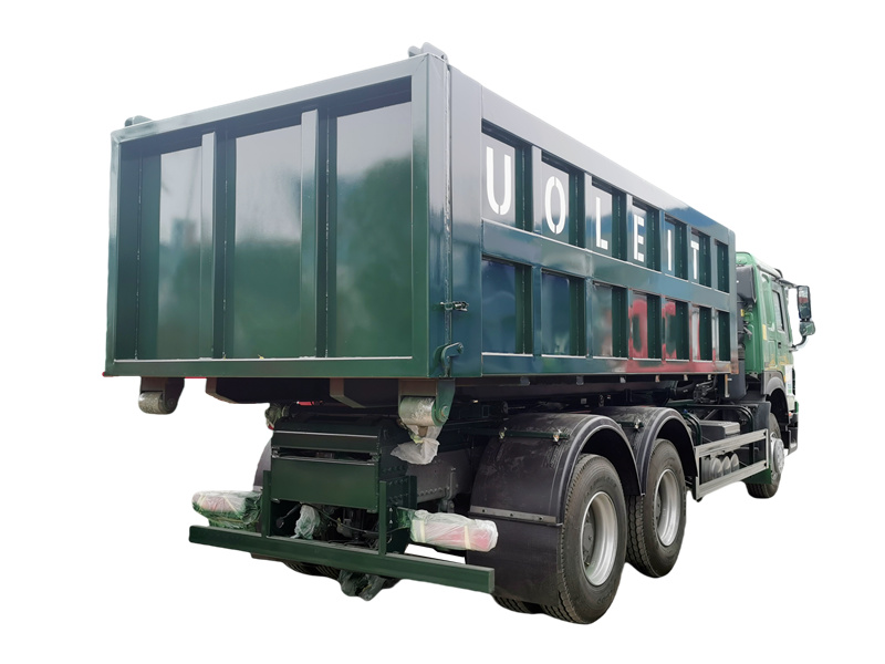 O caminhão basculante para coleta de lixo (também conhecido como caminhão de coleta de lixo com gancho ou caminhão de coleta de lixo com gancho de carregamento) é um veículo especializado em saneamento que utiliza um sistema hidráulico para carregar e descarregar contêineres automaticamente. É usado principalmente para coleta e transporte de resíduos em serviços de saneamento municipais, administração de propriedades e empresas industriais e de mineração. O veículo consiste principalmente em um chassi, um mecanismo de gancho de elevação e contêineres de lixo.