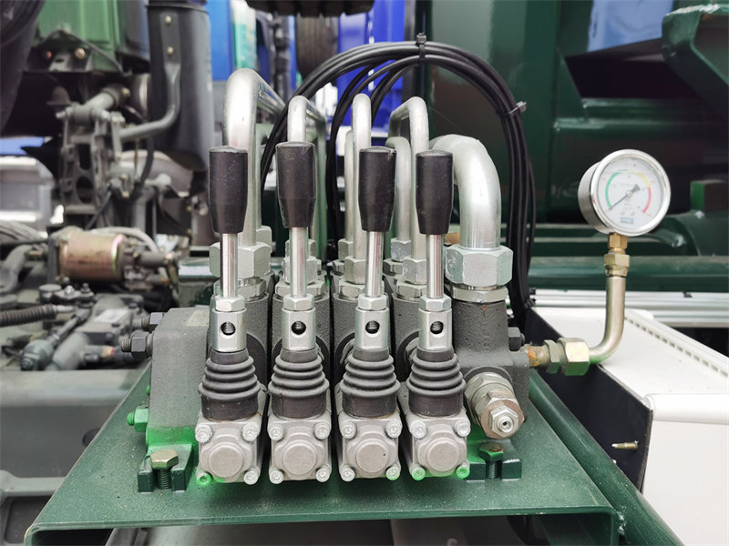 O Caminhão de coleta de lixo HOWO de 20 toneladas com gancho de carregamento O veículo foi projetado com alta confiabilidade e segurança. Sua estrutura superior incorpora um braço de gancho de aço de alta resistência, combinado com um mecanismo de travamento mecânico exclusivo, garantindo que os contêineres de lixo permaneçam firmemente no lugar durante o transporte. Os principais componentes do sistema hidráulico são de marcas internacionalmente reconhecidas, com uma pressão de trabalho de 30 MPa. Ele também está equipado com múltiplos dispositivos de segurança, como válvulas de balanceamento de carga e travas hidráulicas bidirecionais, prevenindo erros operacionais. A estabilidade operacional é ainda mais aprimorada por um dispositivo de suporte traseiro acionado hidraulicamente. O veículo é fácil de operar, com a tomada de força extraindo energia do motor para acionar a bomba hidráulica, permitindo ciclos rápidos de carga e descarga em até 45 segundos. Isso melhora significativamente o nível de mecanização das operações de saneamento.