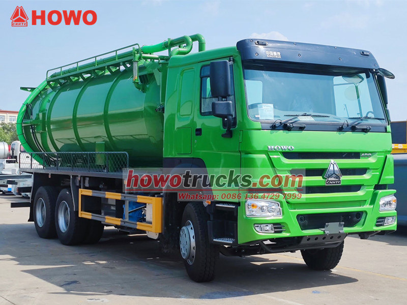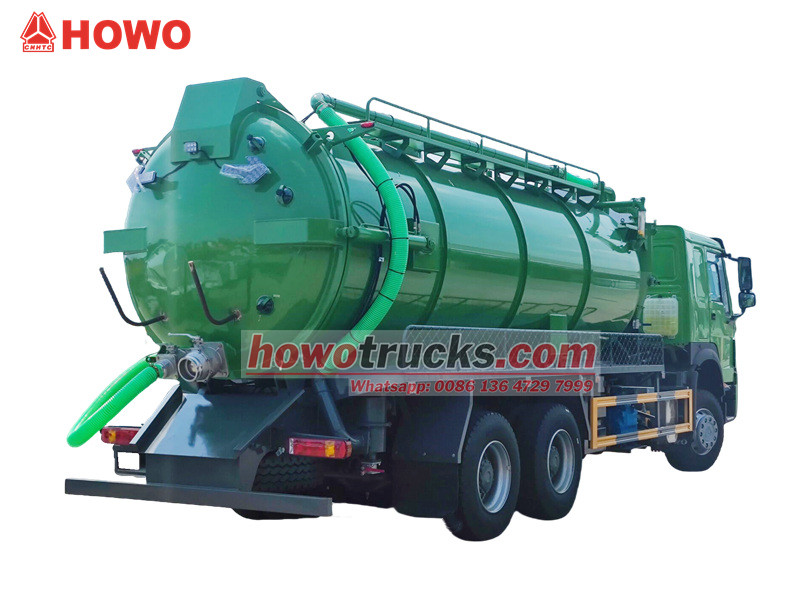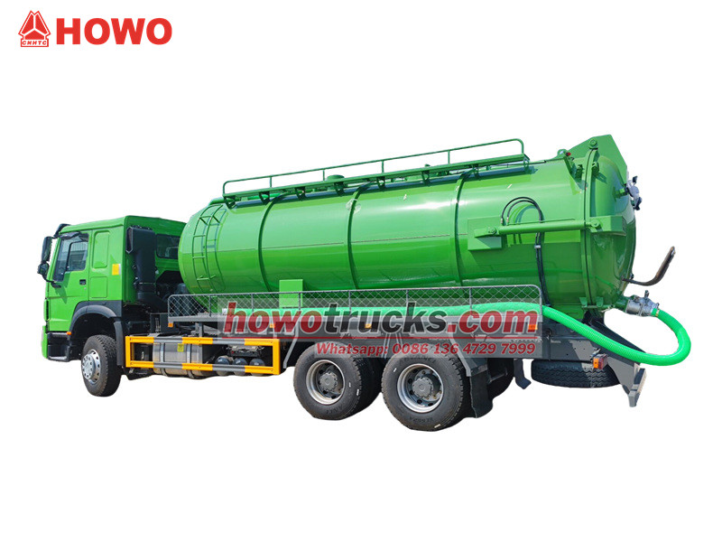 Jurop pump, 4×4, 6×6, RHD drive is optionalO caminhão de sucção a vácuo SINOTRUK HOWO é um veículo profissional de saneamento construído sobre o chassi reforçado HOWO 6x4, que opera com base no princípio da pressão negativa a vácuo. É utilizado principalmente para a sucção e o transporte de resíduos líquidos, como lodo e fezes, provenientes de esgotos, fossas sépticas e galerias pluviais, solucionando com eficácia os desafios de poluição e limpeza em tubulações subterrâneas urbanas e diversos tipos de valas. Seus componentes principais incluem uma eficiente bomba de vácuo italiana MORO e um tanque de esgoto de grande capacidade, oferecendo longo alcance de sucção e significativa profundidade de sucção vertical.