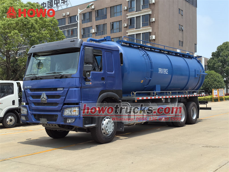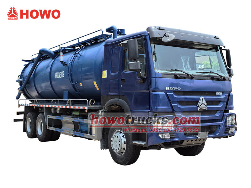 O caminhão-tanque a vácuo HOWO, fabricado pela CS TRUCKS, é um veículo especializado em saneamento, projetado para limpeza e transporte de águas residuais, esgoto, lodo e outros resíduos líquidos. Construído sobre o chassi SINOTRUK HOWO 6×4, possui um tanque de aço carbono de 20.000 litros e uma bomba de vácuo de anel líquido de alta eficiência, que permite sucção rápida a uma profundidade superior a 9 metros. Equipado com funções práticas, como sistema de alarme de nível de líquido, tampa traseira de abertura/fechamento rápido e espelhos de observação, este veículo é adequado para gestão de esgoto urbano, limpeza de fossas sépticas e transporte de resíduos líquidos industriais. É uma solução confiável e profissional para operações de saneamento.