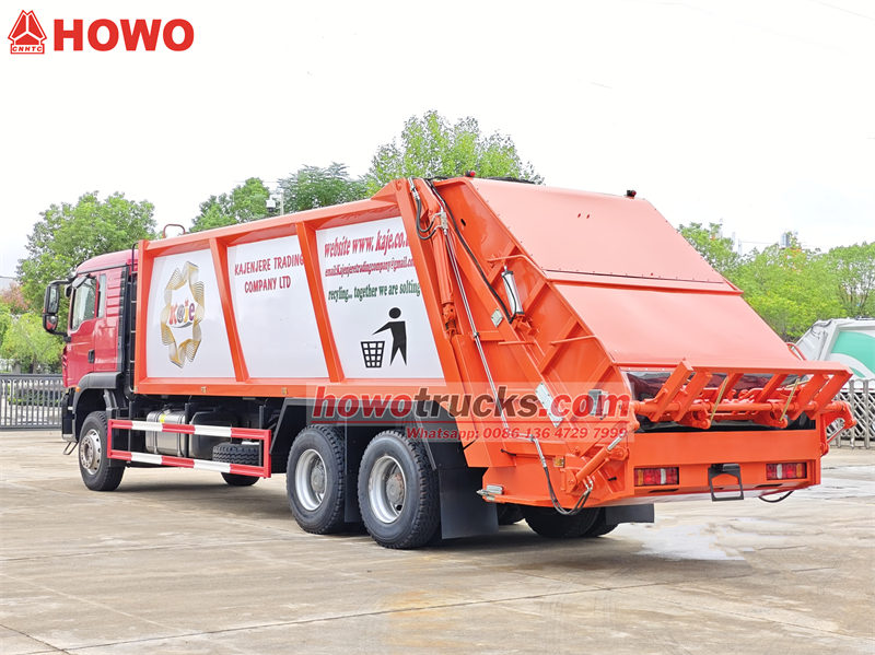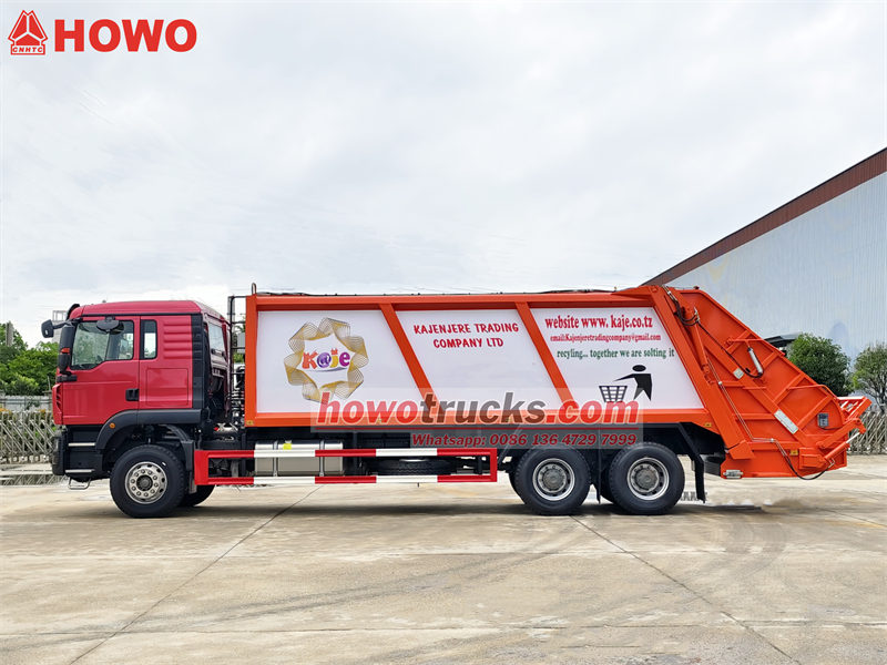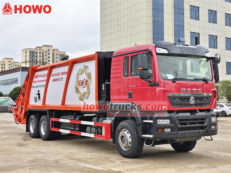 Caminhões compactadores de lixo HOWO de 20 m³ prontos para envio à África.