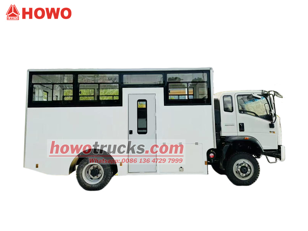 Este caminhão de transporte de tropas HOWO, modificado com base no chassi HOWO 4x4 com tração nas quatro rodas, é um veículo de serviço tático com desempenho equilibrado e um propósito claro.