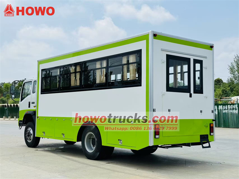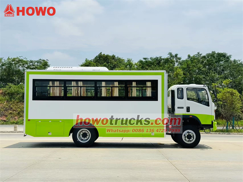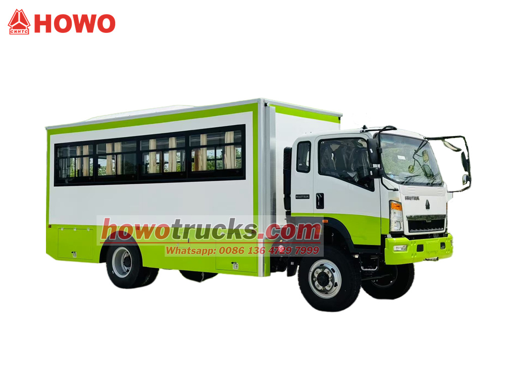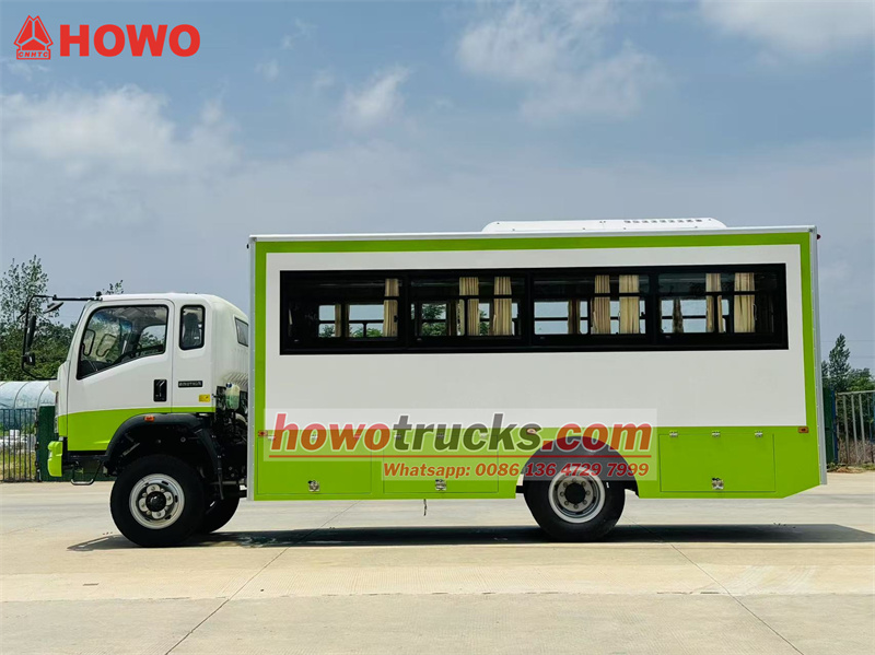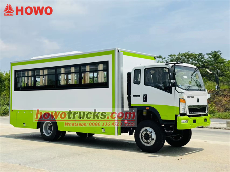 O caminhão de transporte de tropas HOWO 4x4 com tração nas quatro rodas é uma modificação do chassi do caminhão leve HOWO com tração nas quatro rodas, com cabine semi-articulada de 2080 fileiras, distância entre eixos de 3800 mm e equipado com um motor Yuchai YC4E140-33 e uma caixa de câmbio WLY6TS55. A parte superior é um compartimento de transporte de tropas com 22 assentos, janelas transparentes e cortinas em ambos os lados, além de uma porta traseira com janela para entrada e saída. Bagageiros estão instalados acima dos assentos e dispostos em ambos os lados do compartimento. O compartimento é equipado com ar-condicionado e iluminação, e caixas de ferramentas estão instaladas nas laterais inferiores.