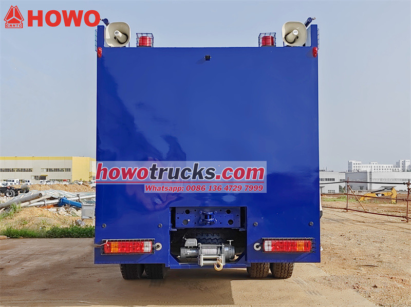 Os motoristas devem possuir habilidades de direção especializadas e capacidade de resposta a emergências, com foco em medidas preventivas de segurança e operações colaborativas remotas. O tanque do caminhão de controle de incêndio e distúrbios Howo é construído em aço carbono de alta resistência com espessura de 6 a 10 mm. Ele pode armazenar 6.000 litros de água e 2.000 litros de espuma, tornando-se um equipamento de segurança indispensável para os setores de petróleo, químico e outros.