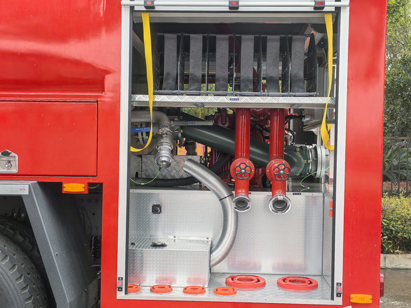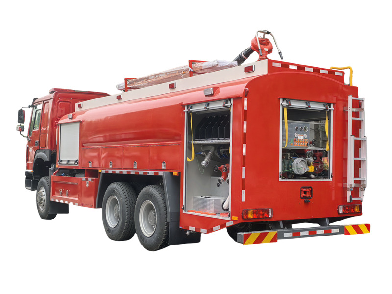O caminhão de bombeiros HOWO 6×6 possui um tanque de água de 8000 litros e um tanque de espuma de aço inoxidável de 2000 litros. Está equipado com uma bomba de incêndio de pressão normal CB10/60 e um canhão de incêndio PL48, com alcance superior a 70 metros, permitindo o combate a incêndios em movimento. O layout da sala de bombas é otimizado. O compartimento de equipamentos utiliza portas de enrolar em liga de alumínio e uma estrutura fixa modular. Caminhão de combate a incêndios fora de estrada HOWO Integra uma estrutura de alta resistência, um sistema de combate a incêndios eficiente e um design de operação intuitivo. Apresenta desempenho excepcional em termos de confiabilidade, eficiência operacional e adaptabilidade ambiental.