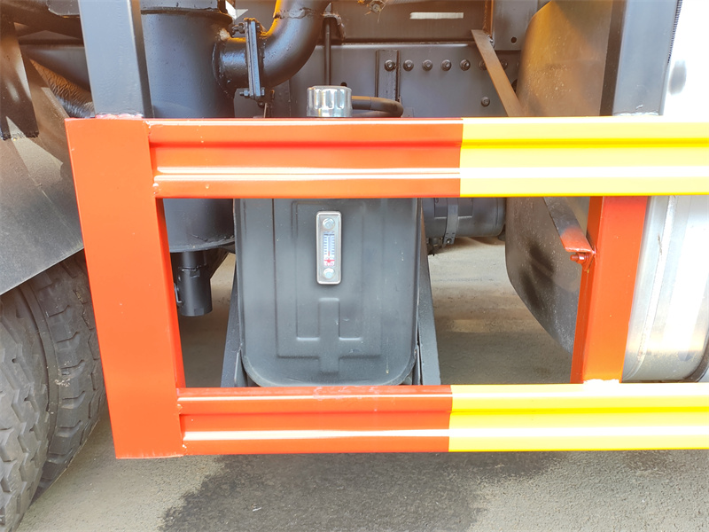 O veículo de sucção de esgoto Howo está equipado com um tanque de óleo hidráulico, uma válvula de descarga, uma bomba de vácuo de circulação de água SK-15, um tubo de sucção e descarga de esgoto, uma bomba de limpeza de alta pressão, um carretel de limpeza de alta pressão, um separador de vapor de água, um separador de óleo e gás, uma janela de visualização do nível do líquido e uma escada.