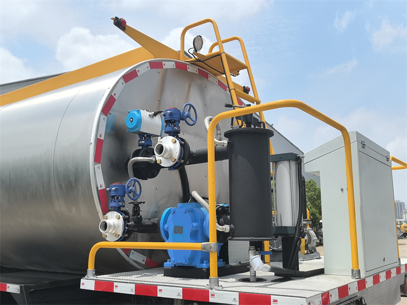 • Capacidade do tanque: 8 metros cúbicos. Construído em chapa de aço carbono de alta qualidade, o interior passa por tratamento anticorrosivo profissional (por exemplo, pintura asfáltica epóxi) e o exterior é revestido com material isolante de alta eficiência, resultando em excelente desempenho de isolamento térmico, com uma queda de temperatura do asfalto de ≤2°C/hora.