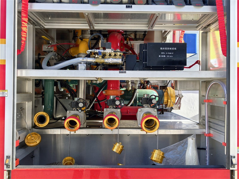 A água, o concentrado de espuma e o ar comprimido sofrem turbulência e mistura na tubulação, reagindo completamente no gerador de espuma (como uma pistola de água) na extremidade da mangueira de incêndio, produzindo uma espuma de ar comprimido extremamente fina e uniforme.