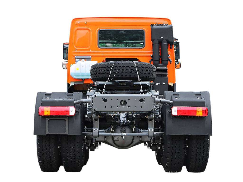 13000x2Caminhão trator HOWO 76 com cabine frontal nova (uma cama, com ar condicionado), controle avançado totalmente em aço, basculante hidraulicamente 55º para a frente, sistema de limpador de para-brisa de 2 braços com três velocidades, para-brisa laminado com antena de rádio integrada, banco do motorista ajustável com amortecimento hidráulico e banco do passageiro rígido ajustável, com sistema de aquecimento e ventilação, quebra-sol externo, aba de teto ajustável, com rádio estéreo/gravador de cassetes, cintos de segurança e volante ajustável, buzina a ar, com suspensão totalmente flutuante de 4 pontos e amortecedores.