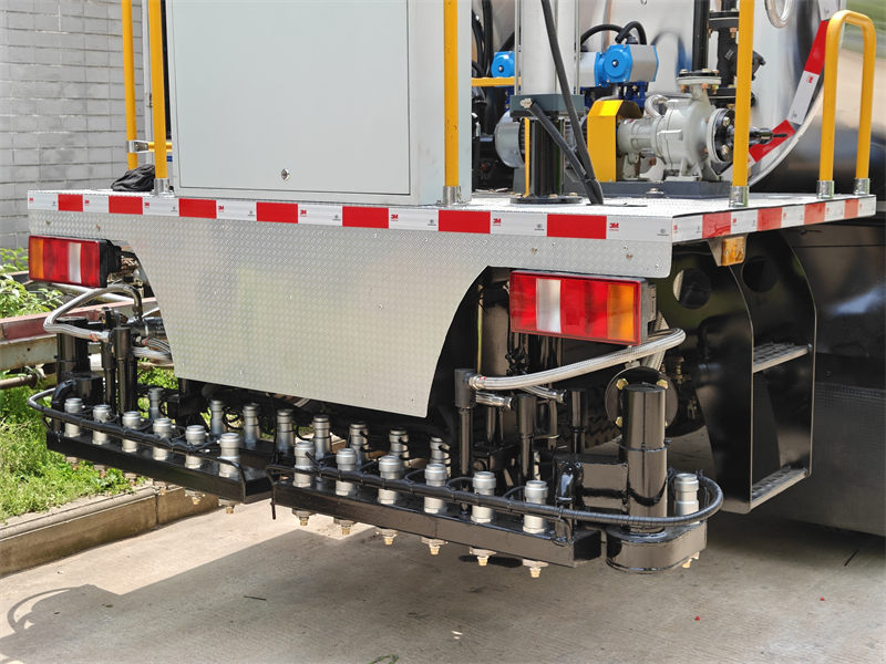 ♦ Controle inteligente: 36 bicos são ajustados independentemente (0,3~3,5L/m²) para obter um controle preciso do fluxo e se adaptar a asfaltos de diferentes viscosidades (asfalto emulsionado/modificado).