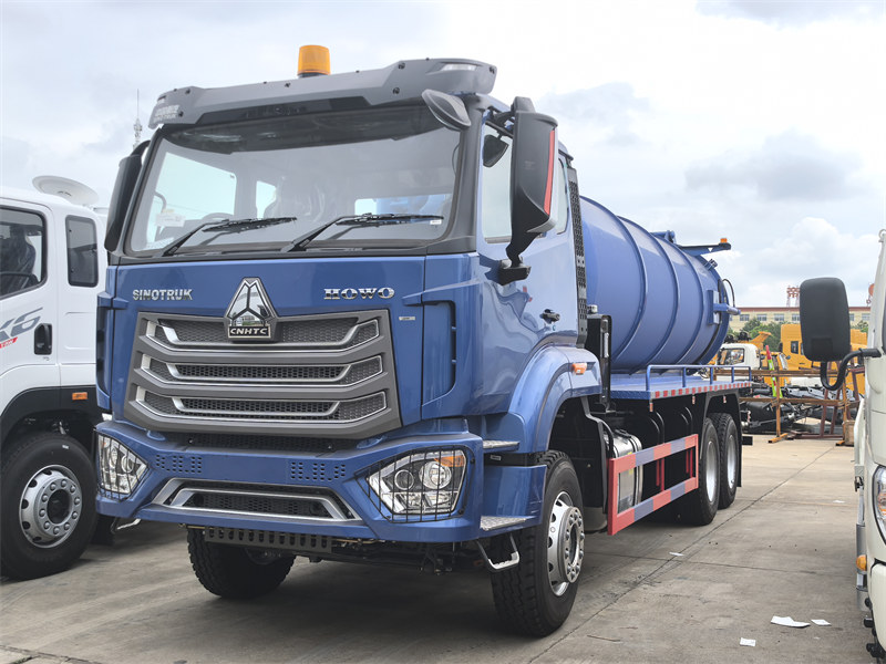 O caminhão de sucção a vácuo HOWO NX Series Supersucker é um caminhão tanque para esgoto fabricado pela CS TRUCKS, projetado com base no novo chassi de caminhão cabine HOWO NX. Equipado com um tanque de esgoto cilíndrico personalizado de 16.000 litros e um sistema de bomba de vácuo, ele opera como um veículo especializado em saneamento, projetado para sucção e transporte de águas residuais, esgoto, lodo e outros resíduos líquidos. Possui sistema hidráulico com um cilindro hidráulico frontal de alta potência para elevação e abaixamento do tanque de vácuo, e cilindros hidráulicos menores com válvulas de balanceamento em cada lateral para abertura e fechamento hidráulico da tampa traseira. Além disso, este caminhão de sucção a vácuo também possui alívio de pressão positiva e negativa para segurança operacional, sendo adequado para o gerenciamento de esgoto urbano e transporte de resíduos líquidos.