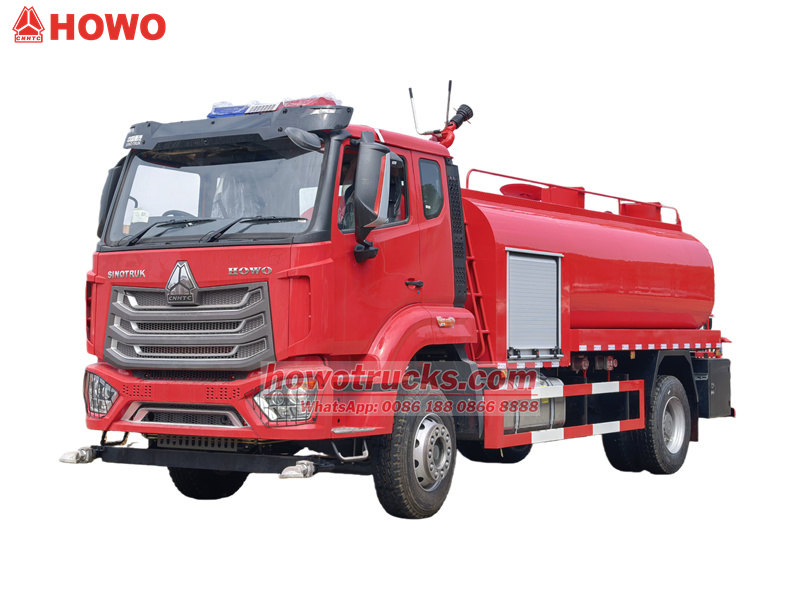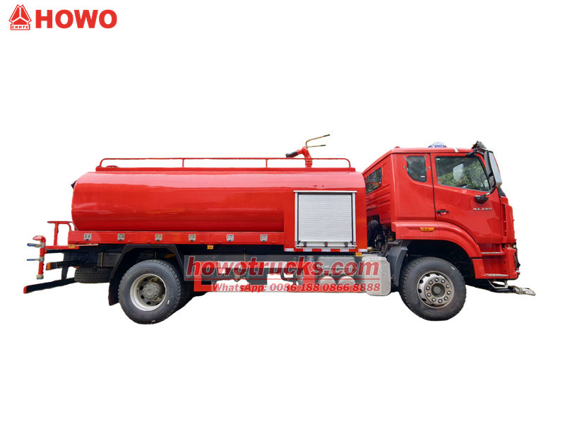 Caminhão-pipa Howo NX 290HP para bombeiros, capacidade de 12.000 litros.