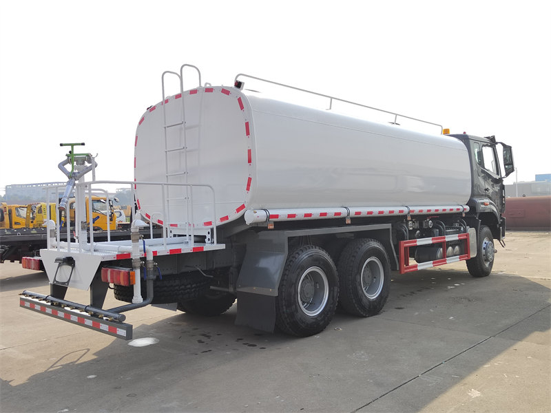 O HOWO NX Water Bowser Equipada com um reservatório de água de aço carbono de 20 m³, atende às necessidades de armazenamento de água de grande capacidade. A bomba de água é o modelo 80QZ60/90S, com vazão de 60 m³/h e altura manométrica de 90 metros, com autoescorvamento rápido para um abastecimento de água eficiente. O sistema de aspersão inclui bicos de pulverização frontal, traseira e lateral (largura de pulverização ≥14 metros) e um canhão de água de alta pressão (alcance ≥28 metros), suportando diversos modos de operação, como lavagem de ruas e pulverização a longa distância. É adequada para saneamento urbano e projetos de engenharia ambiental.