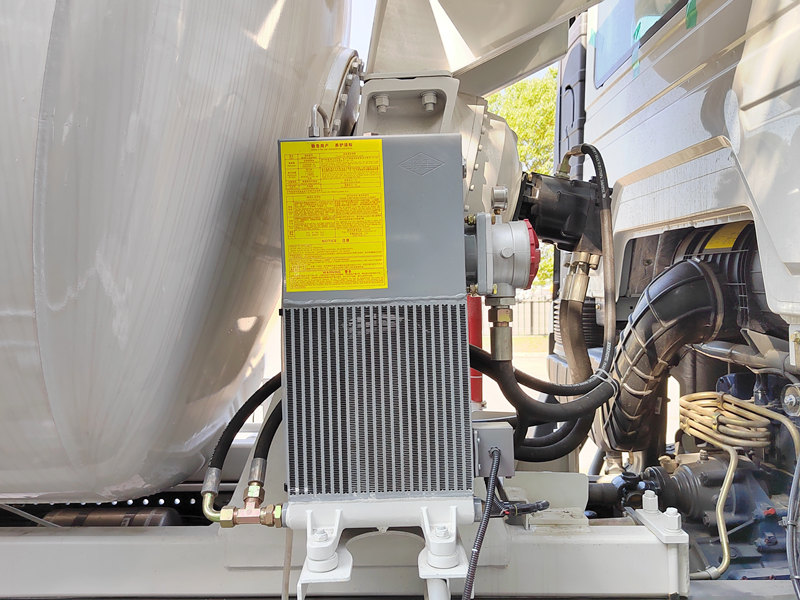 2. Sistema de Transmissão Hidráulica: Este sistema converte a potência do motor extraída através da tomada de força (TDF) em energia hidráulica (deslocamento e pressão), que é então transmitida através do motor como energia mecânica (velocidade e torque), acionando o tambor misturador.