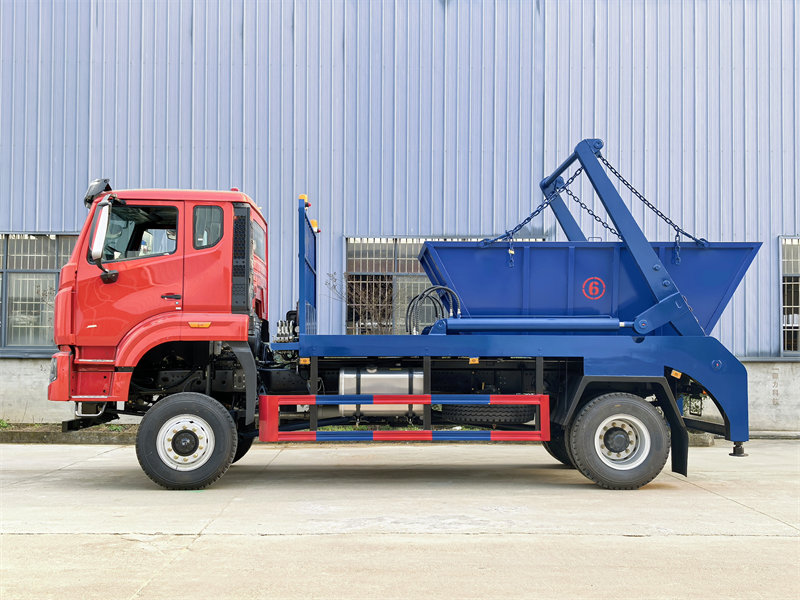 ♦ Design de carregamento e descarregamento automático com braço oscilante:Utilizando um mecanismo hidráulico de braço oscilante, ele pode agarrar, levantar, despejar e recolocar contêineres de resíduos de mineração padrão de forma autônoma, sem a necessidade de equipamentos de elevação adicionais, reduzindo significativamente os custos de mão de obra e tempo.