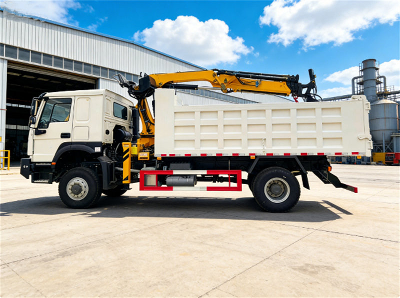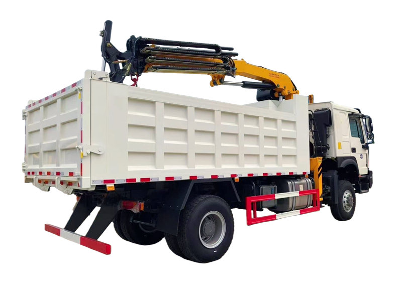 Este caminhão basculante pesado Howo com guindaste é construído sobre o chassi off-road Howo, equipado com motor diesel WP10.340E22 e caixa de câmbio HW19710 de 10 velocidades. Possui alto desempenho e se adapta a condições de trabalho complexas. Está equipado com um guindaste CS Trucks com função de garra integrada, com capacidade máxima de elevação de 8 toneladas, considerando tanto a elevação de cargas pesadas quanto a eficiência na coleta de materiais.