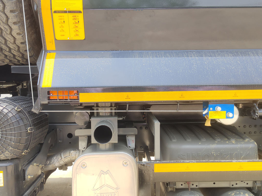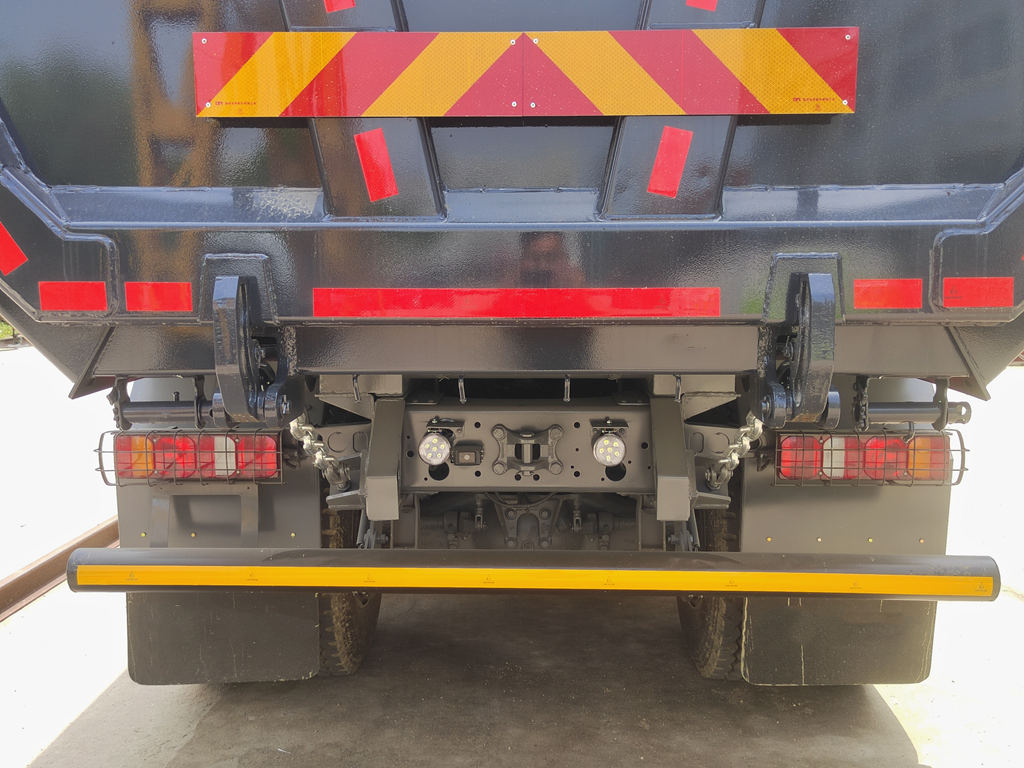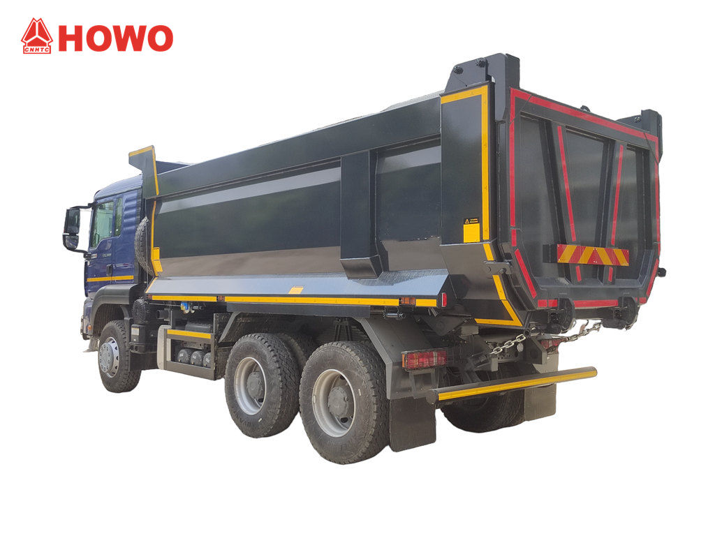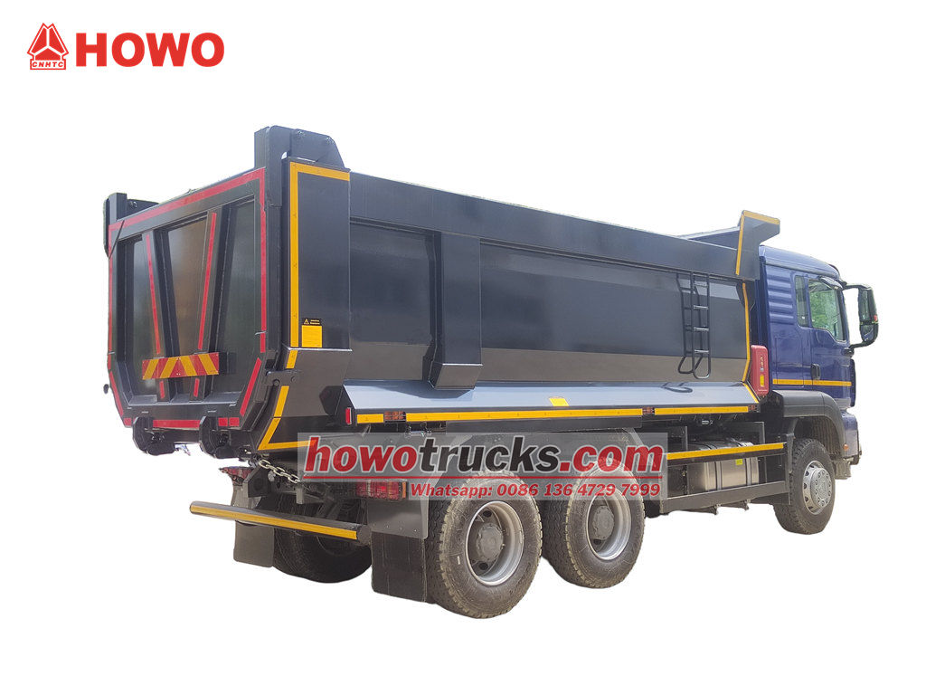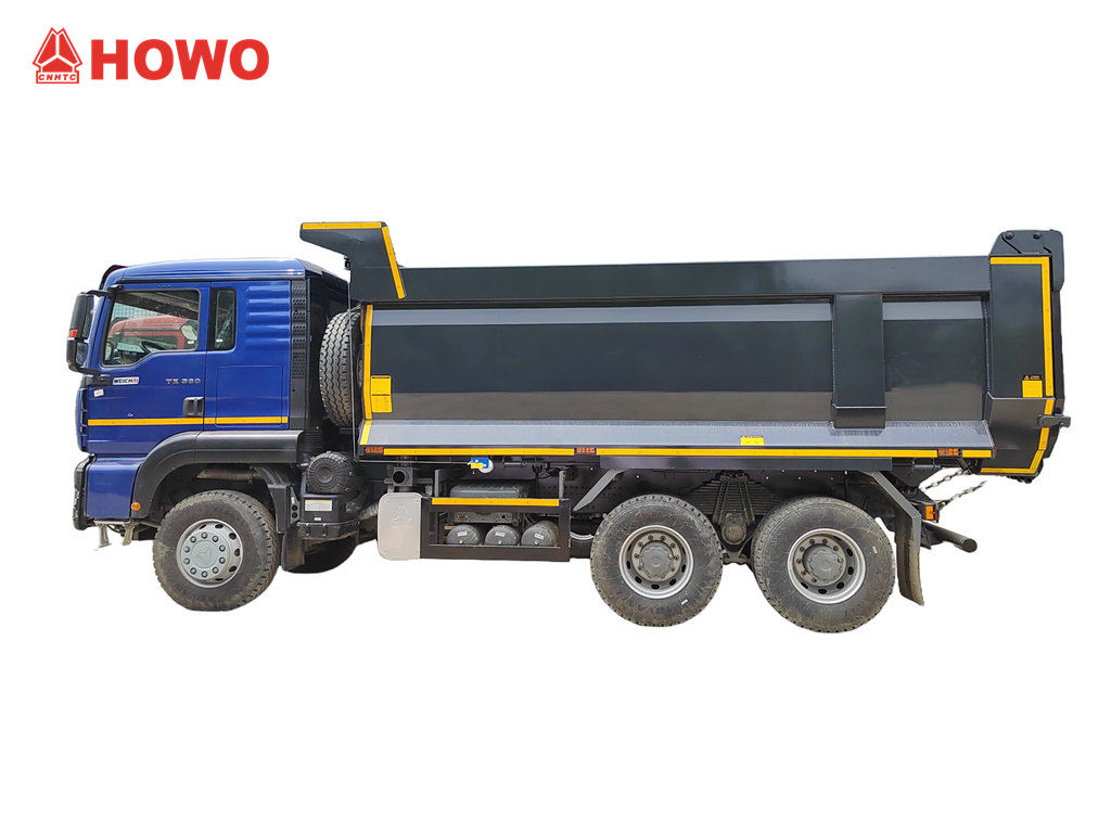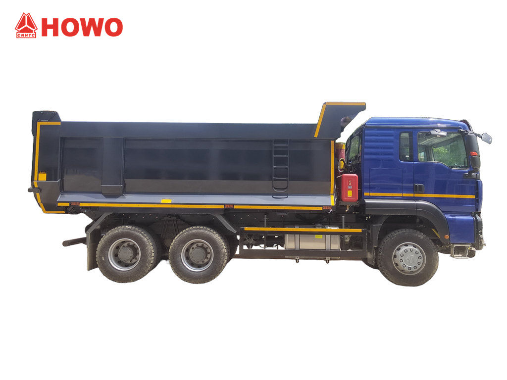 O caminhão basculante HOWO TX Cabin é uma modificação do chassi HOWO TX Cabin 6x4, com distância entre eixos de 3200+1400mm, equipado com motor diesel WP10.380E22 de 380hp, transmissão HW19710 com 10 marchas à frente e 2 à ré, e caçamba basculante em aço carbono com 6 mm de espessura nas laterais e 8 mm na base. 52Dimensões: 00x2300x1400mm. Elevação frontal superior, elevação estável, descarga limpa e rápida. As portas traseiras podem ser abertas e o veículo é controlado pela válvula de controle no lado do motorista, o que facilita a operação.