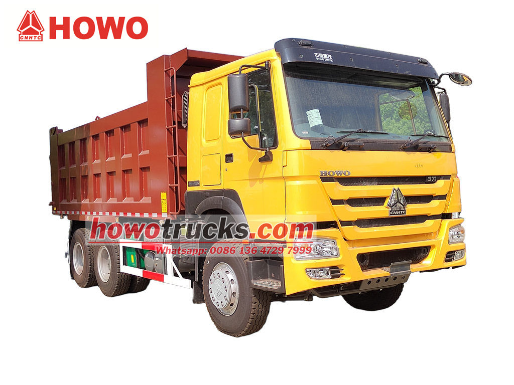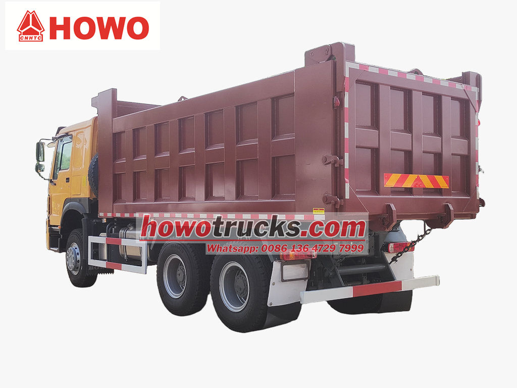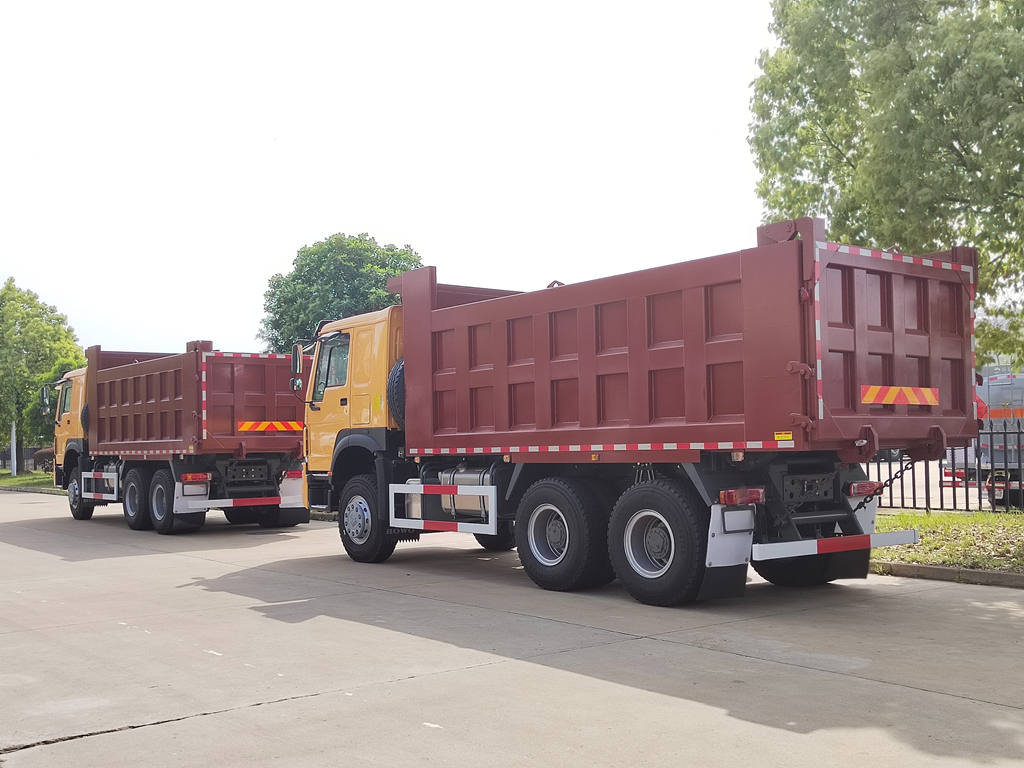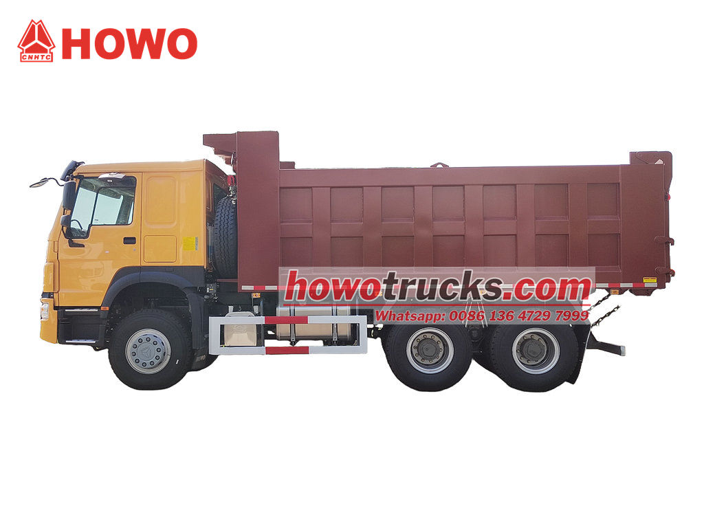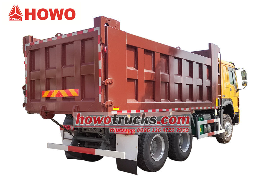 O caminhão basculante de construção Howo de 30 toneladas é modificado com base no chassi HOWO 6x4 RHD, com uma distância entre eixos de 4325+1350 mm, equipado com motor diesel WP10.380E22, caixa de câmbio HW19710 e uma caçamba basculante em aço carbono com seis lados e oito fundos, de 5400x2300x1200 mm. Possui sistema de elevação frontal, proporcionando uma elevação estável, descarga limpa e rápida, portas traseiras com abertura e o veículo é controlado por uma válvula de controle no lado do motorista, o que facilita a operação.