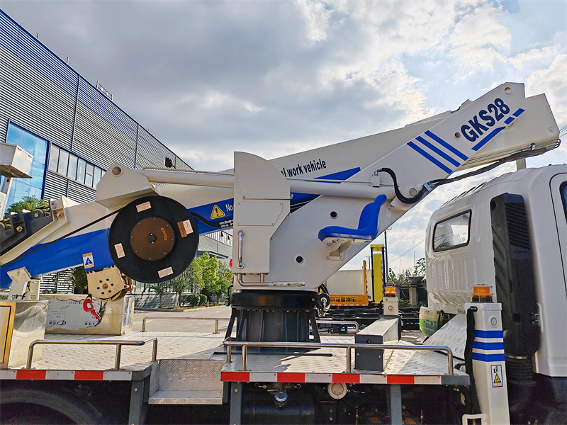 • Boom em funcionamento: A lança telescópica de alta resistência, composta por cinco seções, apresenta um design hexagonal para maior alcance. Resistência estrutural, extensão e retração sincronizadas, movimento suave e ampla faixa de trabalho.Altura máxima de trabalho: 28 m, raio máximo de trabalho: 14,5 m