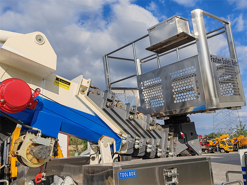 Luzes de operação noturna, um sistema de articulação inteligente e a exibição do status de funcionamento em tempo real aumentam a segurança e a eficiência. Os componentes principais são importados de marcas nacionais renomadas e equipados com recursos de segurança, como travas hidráulicas bidirecionais e válvulas de contrapeso, tornando-o uma escolha eficiente e confiável para aplicações em administração municipal, construção civil e resgate de emergência.