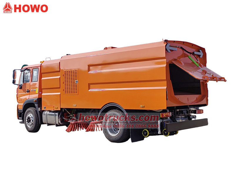 13000The HOWO H5 Truck Mounted 12cbm Road Sweeper is a professional road sweeping equipment positioned in the medium-to-heavy-duty market. Built on the Howo H5 chassis, it features a 4600mm wheelbase and a gross vehicle weight of 18,000kg. Its design balances flexibility and operational stability, allowing it to move easily through various scenarios such as city streets and industrial parks without space constraints. The vehicle offers optional left/right-hand drive to suit different regional needs. The cab is equipped with air conditioning, and the manual tilt design combined with mechanical suspension significantly improves driver comfort, making it suitable for long-term cleaning operations.