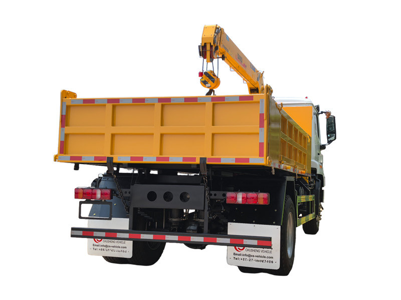 Esse Guindaste HOWO montado em caminhão basculante É adequado para diversos cenários, incluindo canteiros de obras, armazéns logísticos e operações de resgate em campo. Sua funcionalidade pode ser ainda mais ampliada com acessórios opcionais, como garras para toras e cestos de elevação. O guindaste é equipado com uma lança em U de alta resistência, oferecendo um desempenho de elevação 5% superior aos padrões da indústria. Com estabilizadores de amplo alcance e um sistema de proteção contra sobrecarga, garante uma capacidade de elevação nominal de 4 toneladas e uma altura máxima de elevação de 10 metros, ao mesmo tempo que garante total segurança e estabilidade operacional.